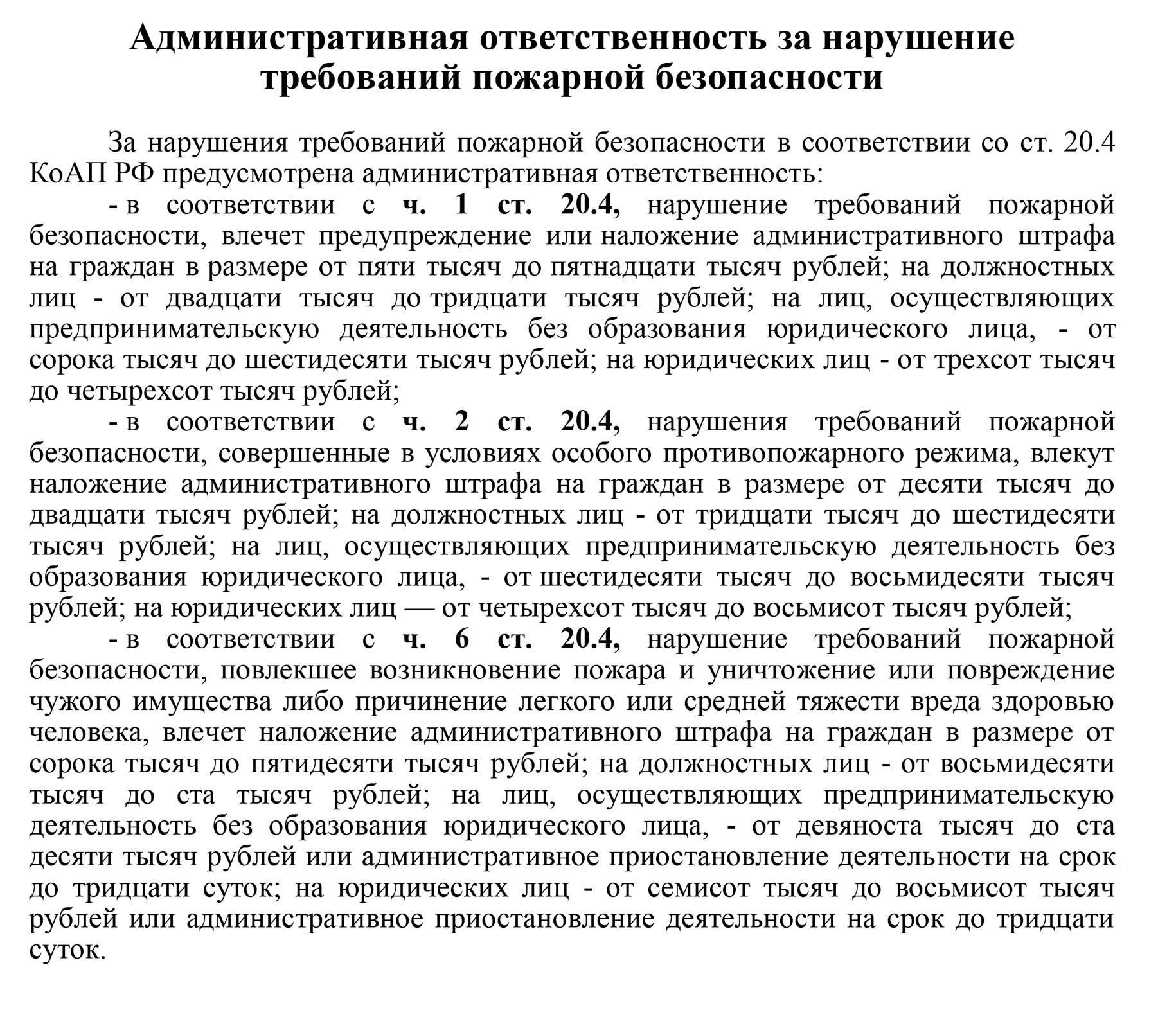 Ответственность за нарушение требований ПБ
