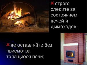 Оставлять топящиеся печи без присмотра, поручать надзор за ними малолетним детям.